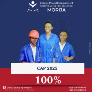 Apostle Isaac Clossou reports that the Mt. Moriah Bible School has graduated 67 students so far, and 42 are active pastors. The Moriah Vocational High School had 32 students finish the school year this term, including seven girls. He also reported that 10 students from the vocational high school, who are studying either electrical or civil engineering, recently passed their national exams and received Professional Aptitude Certificates (CAP). See the photo at right celebrating a 100 percent success rate of the students passing the national exam.