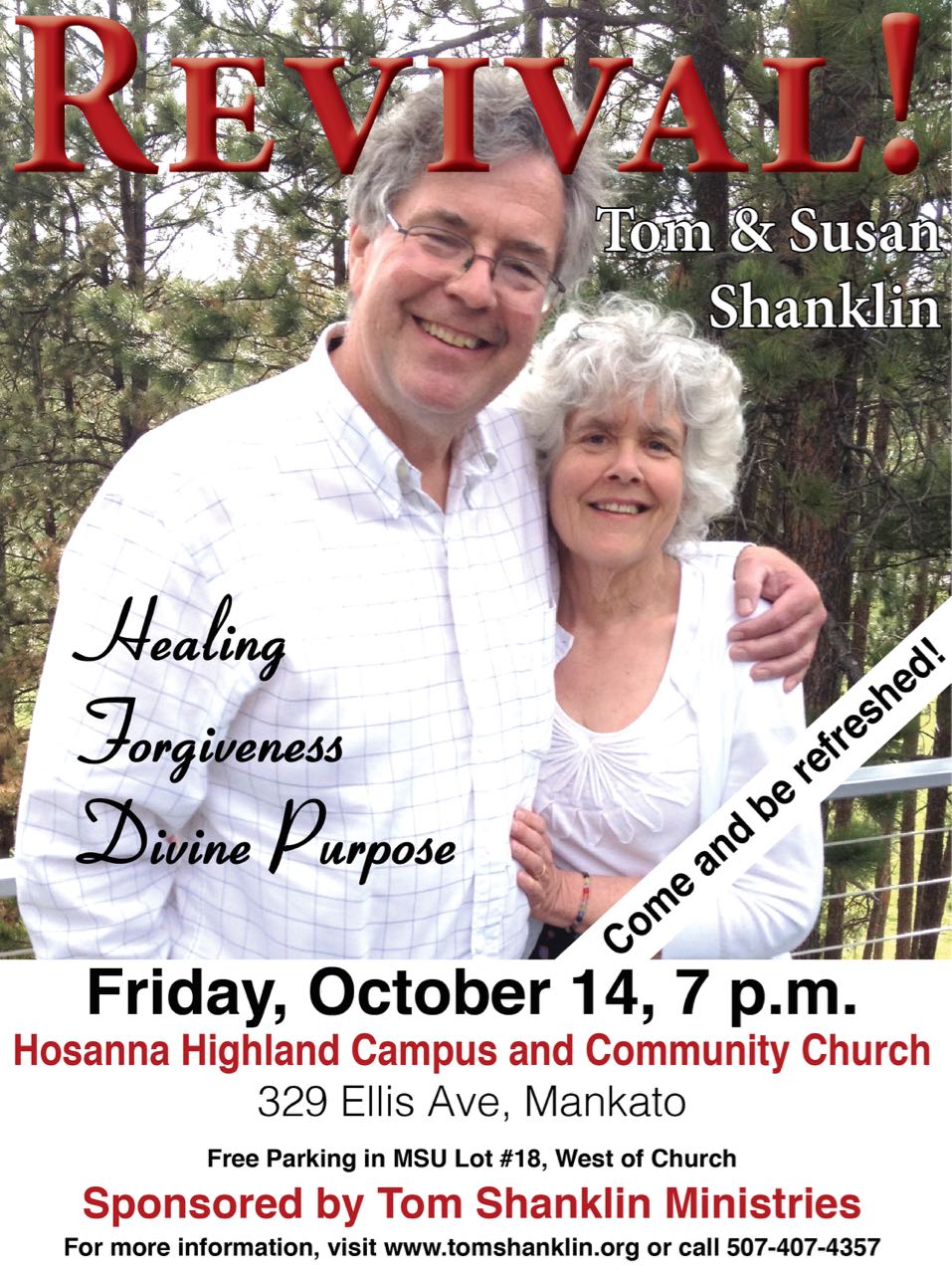 I’m excited to invite you to a Revival Service coming up on Friday, October 14 at  7 p.m. in Mankato. The meeting will be held at the Hosanna Highland Campus and Community Church, 329 Ellis Ave., Mankato. The church is … Read more>>>