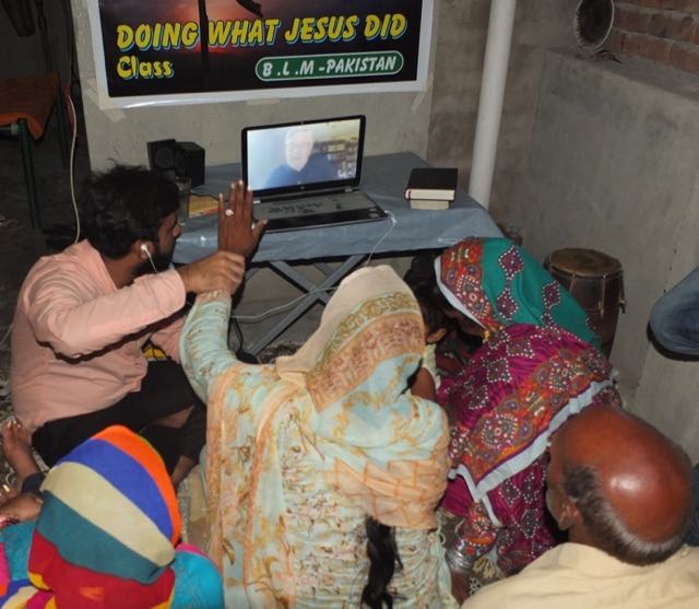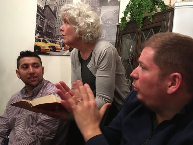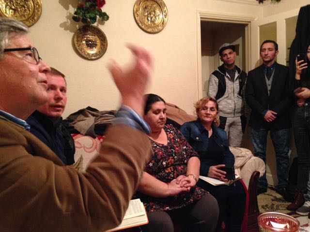 Sharing the Word in Roma Gypsy home meeting, Nottingham, England.